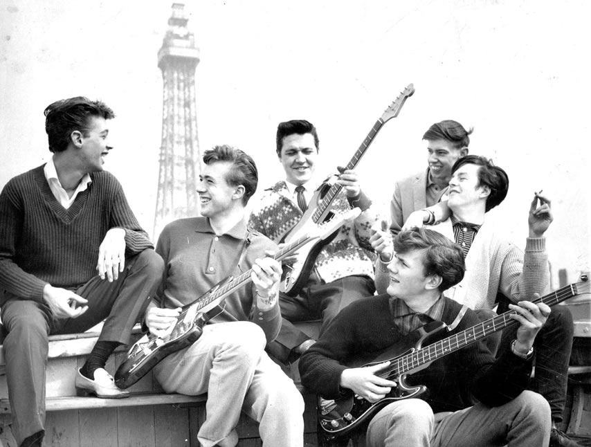 From left, Mike Nordwind, Pete Fielding, Brian Raynor, Ronnie Turner, Tony Ashton (later of Ashton, Gardner and Dyke fame) and front Harry Kershaw.