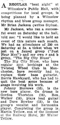 By late 64 I had to leave Ivans Meads, I was simply beat. Dead beat that is - after doing a day job, going to Middleton to rehearse or do a gig then schlep home to Wilmslow (WAY South!) late at night, then get up for work to go to Manchester the next morning!