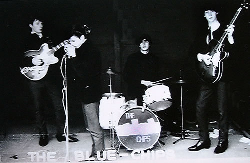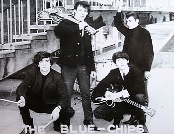 After leaving Kathy and the Boleros, I formed the Blue Chips with the help of Dave Nightingale. We rehearsed the usual concoction of blues/r+b but we had the distiction of 2 excellent harmonica players in Dave and Stuart Perry. Sadly due to inexperience regarding the pursuit of bookings, this line up was short lived.