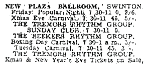 In the wake of the skiffle craze The Tremors were formed in the late 1950s by guitarist Len Dyson. They became Middleton's first all-electric guitar band with the additional asset of having a sixth member on saxophone.