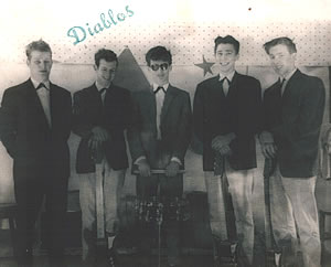 In 1959 a group of lads from the Oldham area formed a beat group and called themselves The Diablos. They became the resident group at the Waterloo Hotel, Union St, Oldham and later became the resident group in the large upstairs concert room at the Friendship Inn, Mumps, Oldham.