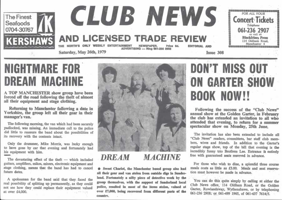 The girls were taken on and DREAM MACHINE was formed, they practiced at local venues and when they worked as one they went out on the road. Each time they played they got rave reviews and became more and more successful as they played large Cabaret clubs up and down the country gaining a lot of popularity on the way. They were a very polished outfit with great harmonies covering all the current songs of that decade and everything was going really well, there was even the suggestion of a record contract but one day in March 1979 suddenly brought everything to a grinding halt.