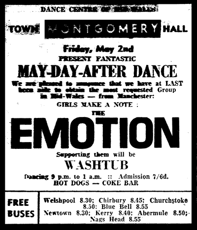 The small ad above features the Emotion for whom I played bass guitar. Other members: Rob Harwood; Billy ________; Geoff Mann; Tony Fearn.
