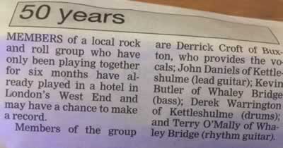 John and Derek used to go to the Youth Club in Whaley Bridge which was where they met Terry O’Malley, Kevin Butler and his cousin Mick Butler.