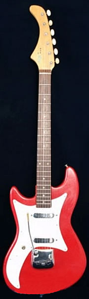 John bought his left-hand Vox Ace from Barratts of Manchester. I went down with him and he paid £40 for it. When we got back Dad was very unhappy that he’d spent so much money but Stratocasters were £160 in those days. The first thing he did was to change the strings round! Around this time, Terry bought a Dallas double cutaway solid body guitar but I can’t find a picture of that model.