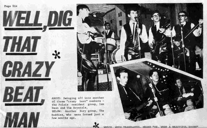 In the gallery is a newspaper article about the Palais at Bury, where we used to have a fan club every Sunday night (reduced entry charge, and I think we put a few bums on seats playing for peanuts :- )