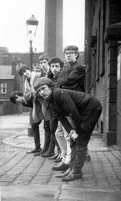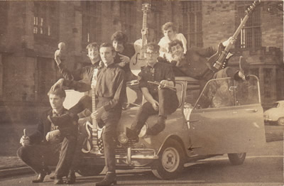 Their opening number was a revelation from the first chord. The way I remember it, one guitarist (rhythm?; Paul G. Shaw) came out and laid down a basic Bo Diddley beat. Another guitarist (bass?; Stuart Whittle) eventually walked on and joined in. Then came the pianist (Mick Whittle, also on maracas) and the drummer (Steve Butler). The music picked up volume and pace. The audience was quietly going apeshit, as was I in the wings. Jim emerged to start thrashing away on lead guitar. The dancers on the dance floor near the stage were the first mosh pit I ever saw. Then the vocalist (Eric Lever) sauntered out and launched into song. I don't remember what, and it doesn't matter. It was a scorching performance, the whole place was going berserk ... it's been my benchmark for a live show ever since.