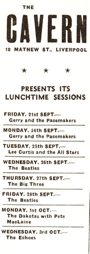 Also making an appearance on this date at the Cavern, Gerry and the Pacemakers.