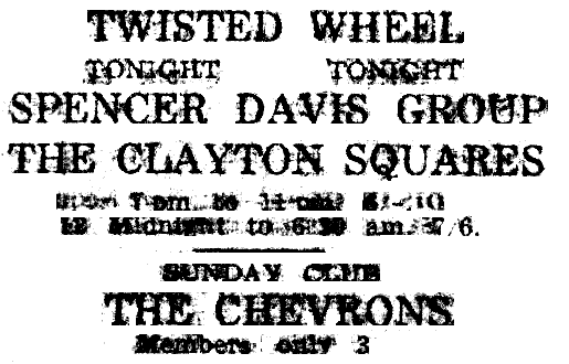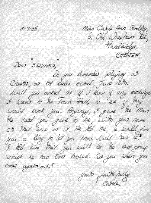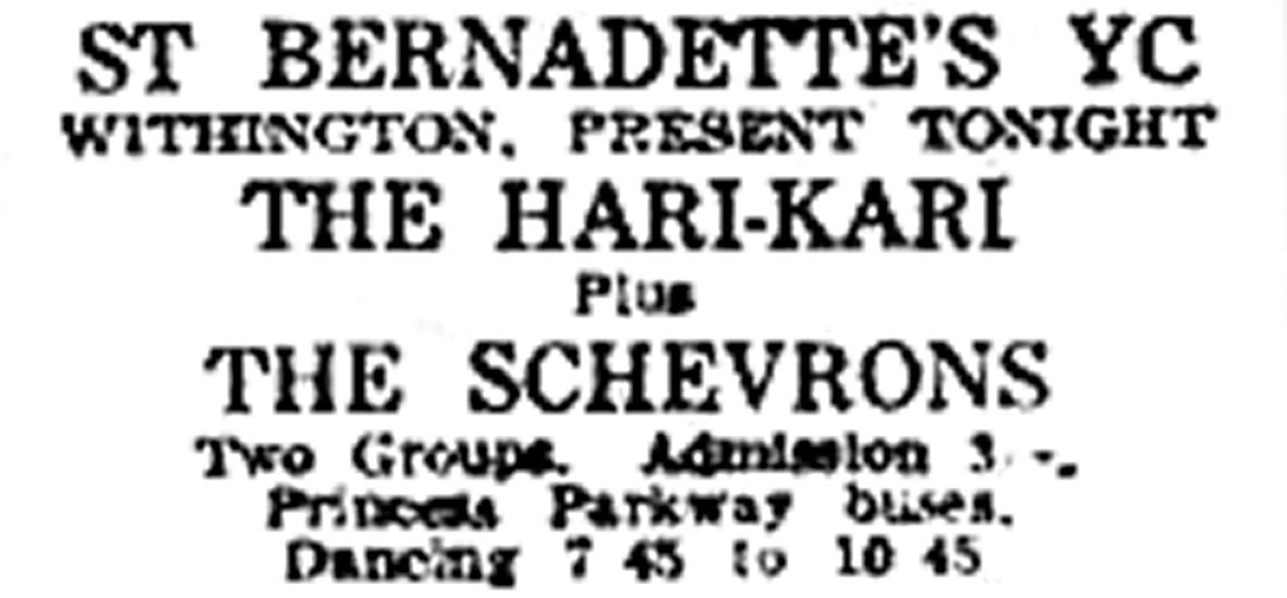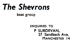 We were a 4/5 piece group from South Manchester, and played local pubs, and clubs including St. Kentigern's, St. Bernadette's, The Forty Thieves, The Carina Club, The GPO Club (Manchester), The Princess Theatre Club (Chorlton), The Oasis, The Twisted Wheel (Brazennose Street), Seven Stars (Heywood).