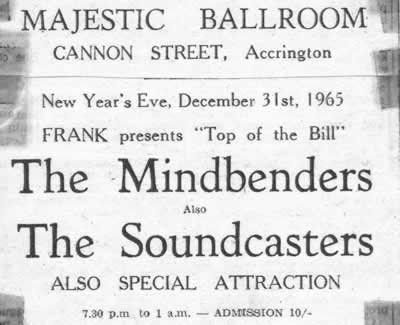 On Monday the 25th October 1965, the Soundcasters played at the Majestic Ballroom in Accrington, (Accy Con to the locals). This was the aim of most local bands, as it was the only venue in Accrington where you could catch a big name group on a Saturday night.