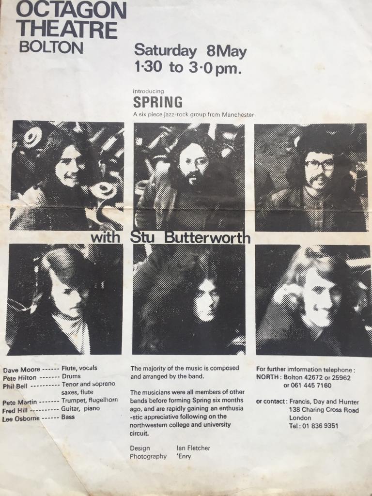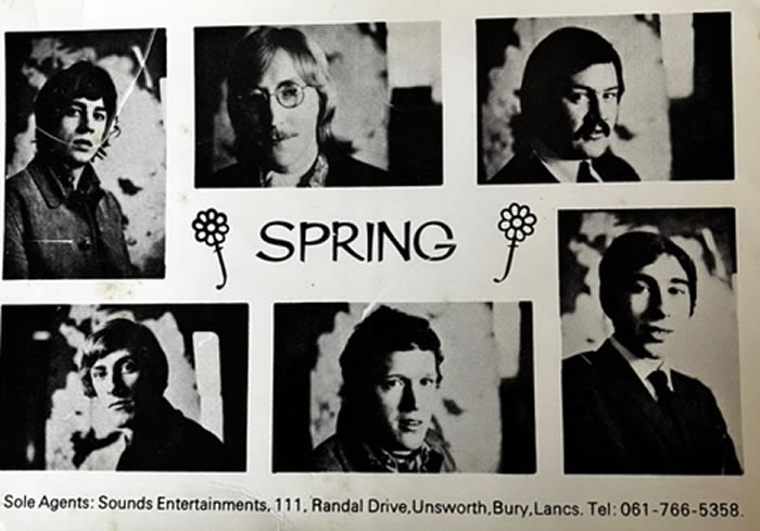 Spring are evolution of the soul sect who played all the 60s coffee clubs all night, soul venues in the north pubs in an around Manchester and Salford you grow up pretty fast playing down Dock Road in Salford in the 60's.