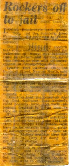 In 1963 Tony & The Senators spent a Sunday afternoon in Strangeways Jail, they were invited to play at a prisoners concert. Mostly men, though there were a few women prisoners there at the time, a curtain divided the men from the women so they couldn’t see each other. The gig took place in the prison Chapel.
