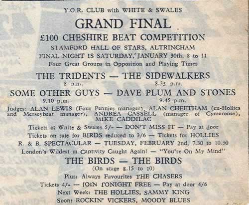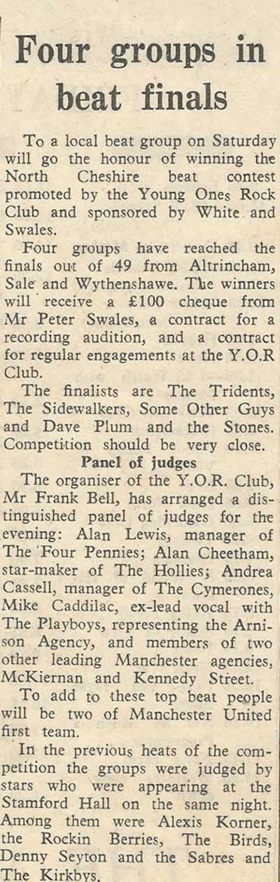 Originally formed in the mid-sixties by Peter Scorah, John Padbury and Phil Holland in a garage on Washway Road, Sale and later joined by John Jones and John Crowe the group played many venues in the Greater Manchester area.