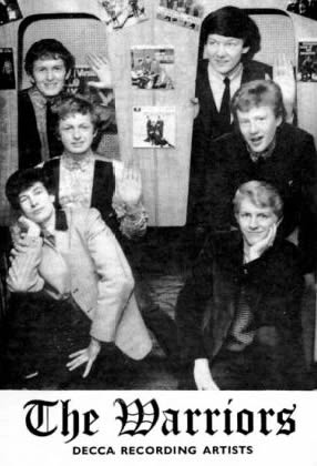 In 195? The Warriors formed in Accrington, Lancashire, with Tony Alveston on lead vocals (b. Anthony Alveston, 1946?, Accrington, Lancashire, UK), John Hill on lead guitar (b. 1946?, Higher Antley Street, Accrington, Lancashire, UK), Dave 'Fossy' Foster on bass, backing vocals (b. David Foster, September 6, 1946, Liverpool, Lancashire, UK), Ian Alveston on rhythm guitar (b. 1946?, Accrington, Lancashire, UK) and Derek Thornhill on drums (b. 1946?, Accrington, Lancashire, UK). The band practised at the old Springhill Car Club, not far from Holy Family (Mt. Carmel) School and played local working men's clubs, but had to get permission to play as they were all still at school. Tony and Ian Alveson had been to St Mary's School on Moscow Mill Street, Oswaldtwistle from age five and then went to Holy Family until they were sixteen.