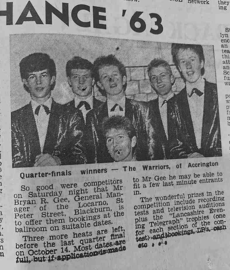 In Summer 1966 The Warriors played at The Bolton Palais in Bolton, Lancashire, The Beachcomber Club in Leigh, Lancashire, The Wythenshawe Sporting Club in Wythenshawe, Manchester and The Longsight Club in Longsight, Manchester.