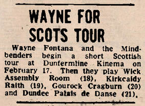In January & February 1966 the band went on a short tour of Scotland, starting on January 26, 1966 at The Perth Civic Hall in Perth, Perthshire, Scotland and finished on February 5, 1966 at The Town Hall in Tain, Scotland.