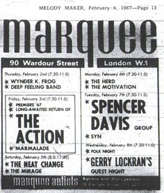 - Sunday, May 7, 1967: The Redcar Jazz Club, Redcar, North Yorkshire, UK, with The Bluecaps