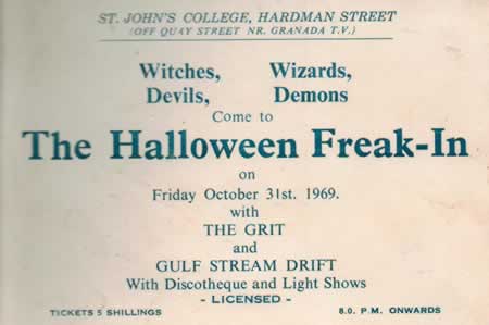 "The Grit Band" developed a gruelling schedule, once playing three gigs in one day. They started at Manchester University with "Screaming Lord Sutch" on a Saturday afternoon, then played the "Bolton Octagon Theatre" in the evening, then "Las Cuevas" Chorlton late evening where they gigged for free but were always fed and watered "a la carte" until the early hours.
