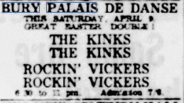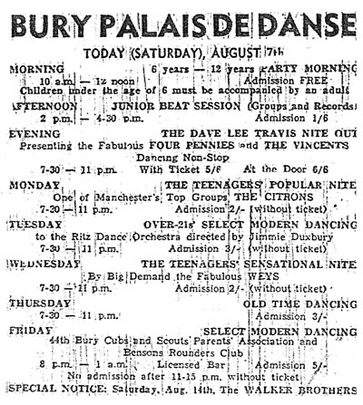 The Vincents played the Palais on a number of occasions supporting some of the headline acts of the day. Most notably supporting the 'Walker Brothers' during their 1965 UK tour - Saturday 14th August 1965!