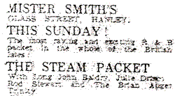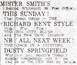 Funny coming across this site because I went to Mr Smiths in Catford must have been late 1960. I cannot remember exact dates but we also traveled up from London to Mr Smiths in Manchester. I will always remember it because I saw the Bonzo Doo-dah Band - anyone else see them there?
