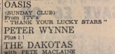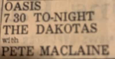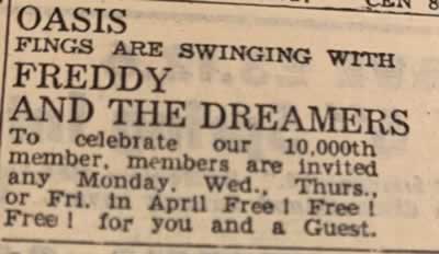 I remember Paul McCartney sitting on the small stage after the gig chatting to anybody and signing autographs. I think I got one but I don't recall what I did with it. The Oasis had a great informality about it and you could get up close and personal to the singers. Especially true on Tuesday nights when local favourites like the Olympics and Pete Maclaine and the Dakotas had the house spot.