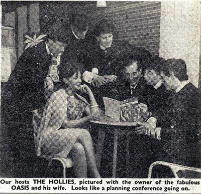 Ggetting back to the Oasis club one summer's night we were waiting for the club to open (it was when Hermans Hermits were appearing) and we turned our heads to see this van driving down the street. It pulled up outside the club - Peter Noone jumped out, followed by the band members.