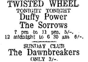 - Saturday, January 30, 1965: Duffy Power, The Sorrows