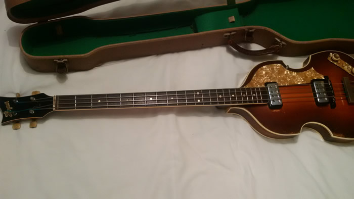 I bought the Beatles bass from Jones's Music Shop in Ashton under Lyne new in 1964 and used it for lots of venues up and down the UK. It's still in the original case and totally original.