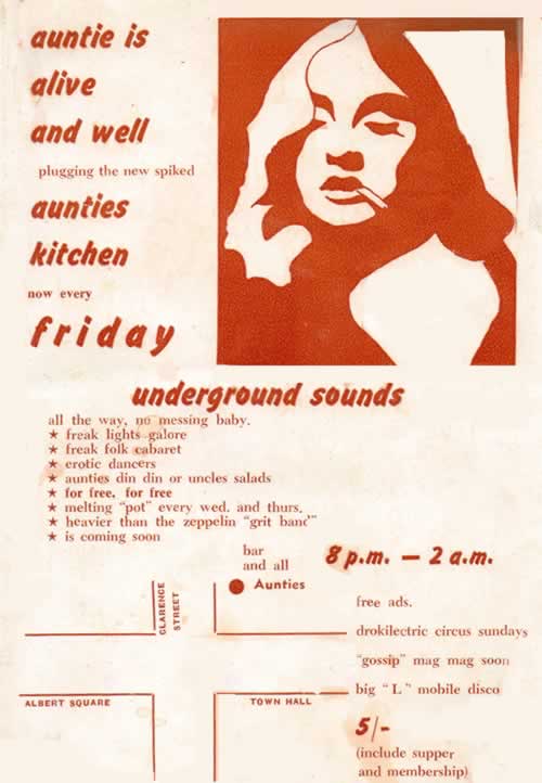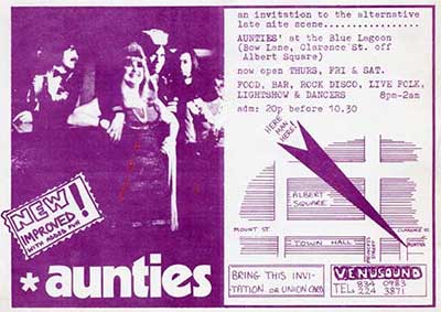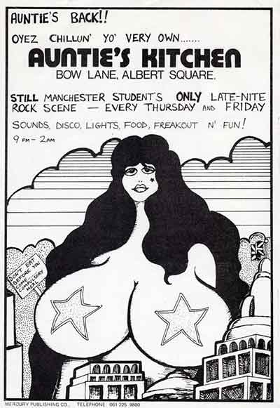I well recall going to Aunties on a few occasions on a Friday night after visiting Manchester hostelries with a group of us from Bramhall. Don't recall any specific nights except one when the New York Dolls were dues to play Manchester and a guy was flogging tickets for the gig - I think the following week. Happy days though!