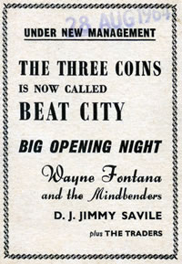 I have happy memories of visiting Beat City on Saturday nights.A bunch of us used to go to the Co-op hall on Market St Droylsden which was of course owned by Barry Collins and the late Sir Jimmy Savile.